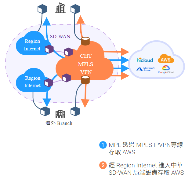 SD-WAN整合MPLS IPVPN、互聯網和移動網路,以提供穩定且靈活的網路基礎設施。多樣性的分流機制